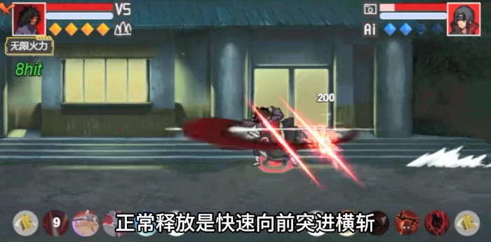 快速向前突进横斩,起手非常快