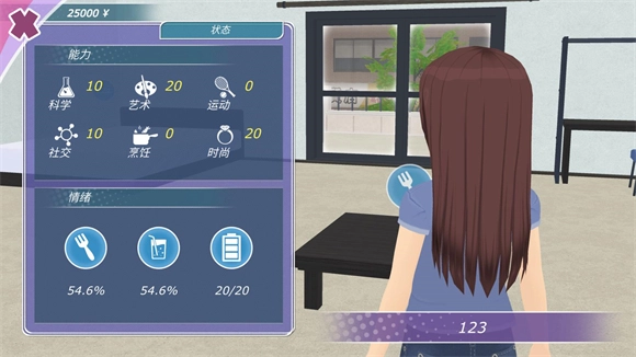 游戏里的角色具备多项状态数值,具体包括艺术值、科学值、运动值、烹饪值、时尚值、社交值与亲密值。在这些数值中,艺术值、科学值、运动值、烹饪值、时尚值、社交值能够借助完成各类目标或者更换服装的方式得到提升,而亲密值仅能通过和女友进行互动来获取。在剧情模式里,决定结局走向的一个关键要求便是亲密值达到150。