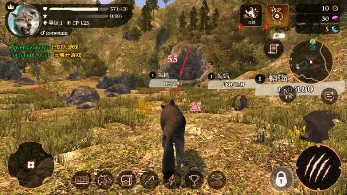 击败猎物获取金币,用这些金币能够提升狼的各项属性。