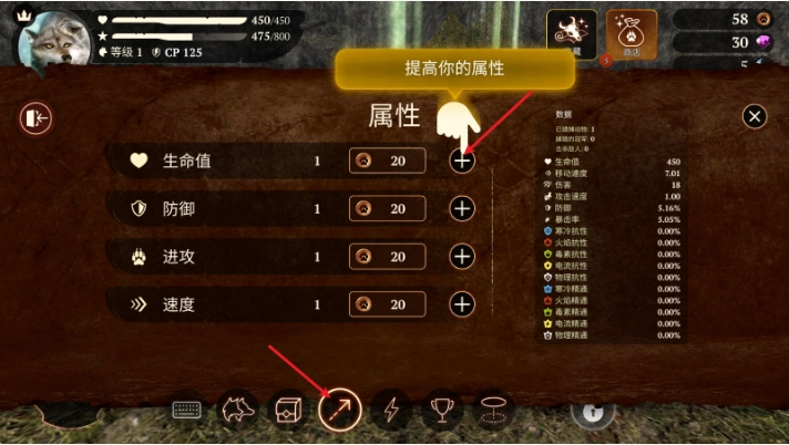 1、玩家可以自由提升自身属性,一步步成长为真正的狼王。