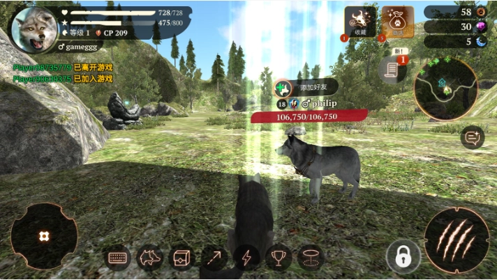 - RPG系统:可自主规划属性加点与技能升级方向,逐步成长为独当一面的狼王。
