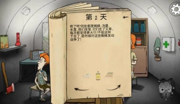 收音机接通军方联络——地图、手电、扑克牌中随机抽取一样,以此获取避难所位置——从斧子和枪里随机选一件道具,用于砍树或缴枪(道具会随之消耗)——安排一人与军队接头——军队抵达并敲门实施营救。