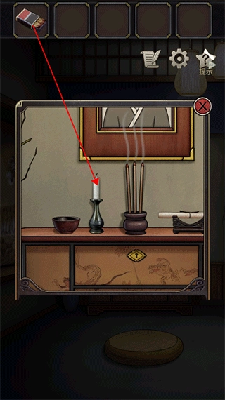 1. 游戏启动后,点击台子就能在上面找到火柴,接着用火柴去点燃蜡烛。
