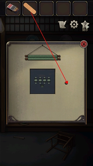 3.点击墙后的壁画,按下旁边的按钮,再用创可贴把按钮粘住