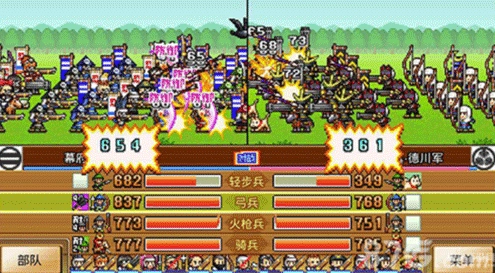 兵种升级方面,前中期优先加铁炮和骑兵,弓箭兵随后补上;等到攻打武田家时再重点补充步兵。在此之前,兵力规模保持在300左右即可满足需求。说个小发现哈,我大概数了下,每种士兵好像各有30名,规则是10点兵力对应1个士兵。当兵力超过300后,每攒够10点兵力就能给一个士兵升级,升级后士兵的攻击、防御和血量都会提升,最直观的变化就是他们的外形和武器会不一样。所以你就能理解,为什么把其他国家都灭了之后,剩下那个有1200兵力的德川足轻会那么棘手——不是说打不过,只是得花更多时间去升级自己的士兵才行。