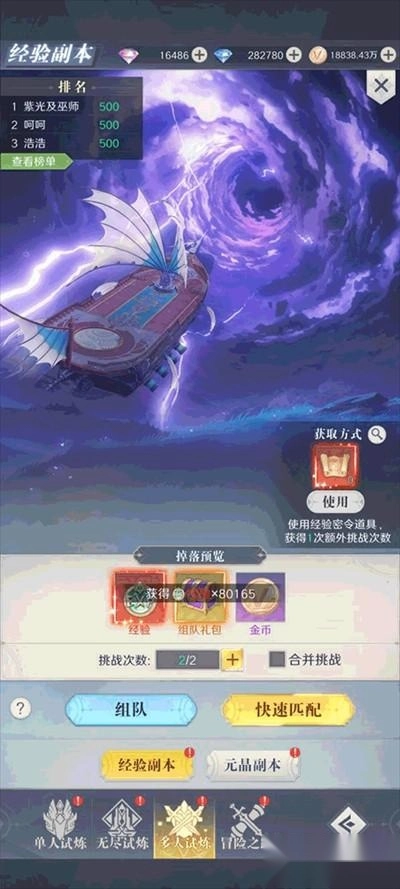 等级越高的VIP,可使用钻石购买额外次数,或者消耗一个经验密令道具进入。