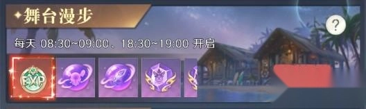 限时时活动“舞台漫步”开启啦!活动时间为每日8:30-9:00以及18:30-19:00,每位参与者每天仅能参与其中一场哦。温馨提示:千万别错过这次机会,参与活动所获得的经验值和完成一次经验副本是一样的呢!