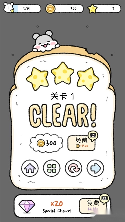 3、每当成功完成解谜拼图,给仓鼠派送糖果时,都能收集到星星。