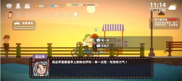 3、共享单车每次2元(上下车计为一次,建议提前规划行程。骑行过程中可进行对话、购物等操作,但仅限街道上的镇民使用)。骑行时选择加速会消耗精力值,同时可获得活力经验(显示为红色)。