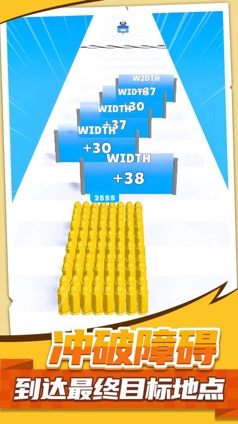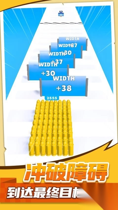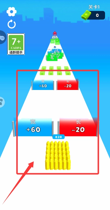 1、进入游戏关卡后,操控黄色子弹堆向前移动,选择能提升自身参数的属性门。