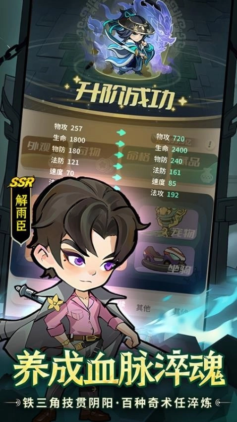 4、角色经过升级后,不仅能够拥有极强的能力水平,还可以提升物攻、生命、物防、速度、法防等各项属性。