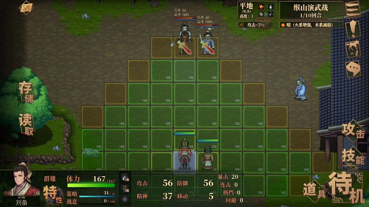 点击武将即可操控其行军位置,界面中可查看武将的详细信息与技能说明。每个回合仅能选择一项操作(使用技能或发起攻击),随后便会结束当前回合!请结合实际战况对战棋布局进行调整。