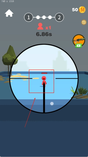 1、滑动屏幕调整准星位置,实现精准瞄准打击,点击射击按钮即可完成击杀,需注意提前预判敌人的移动轨迹。
