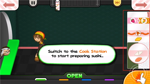 4、接下来会为玩家介绍寿司店,点击右下角的按钮;进入订单站后,顾客的订单都在这里。