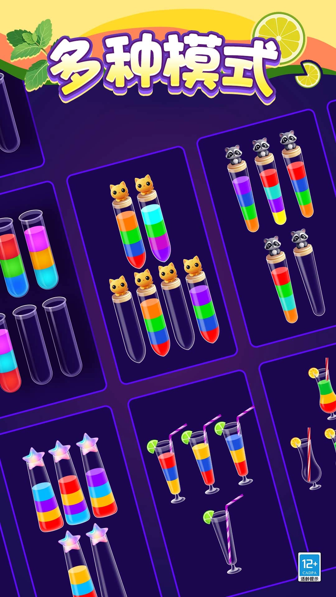 1、借助不同颜色液体之间的排斥特性,通过倾倒动作实现分类,在规则明确的益智挑战里锻炼逻辑思维能力。