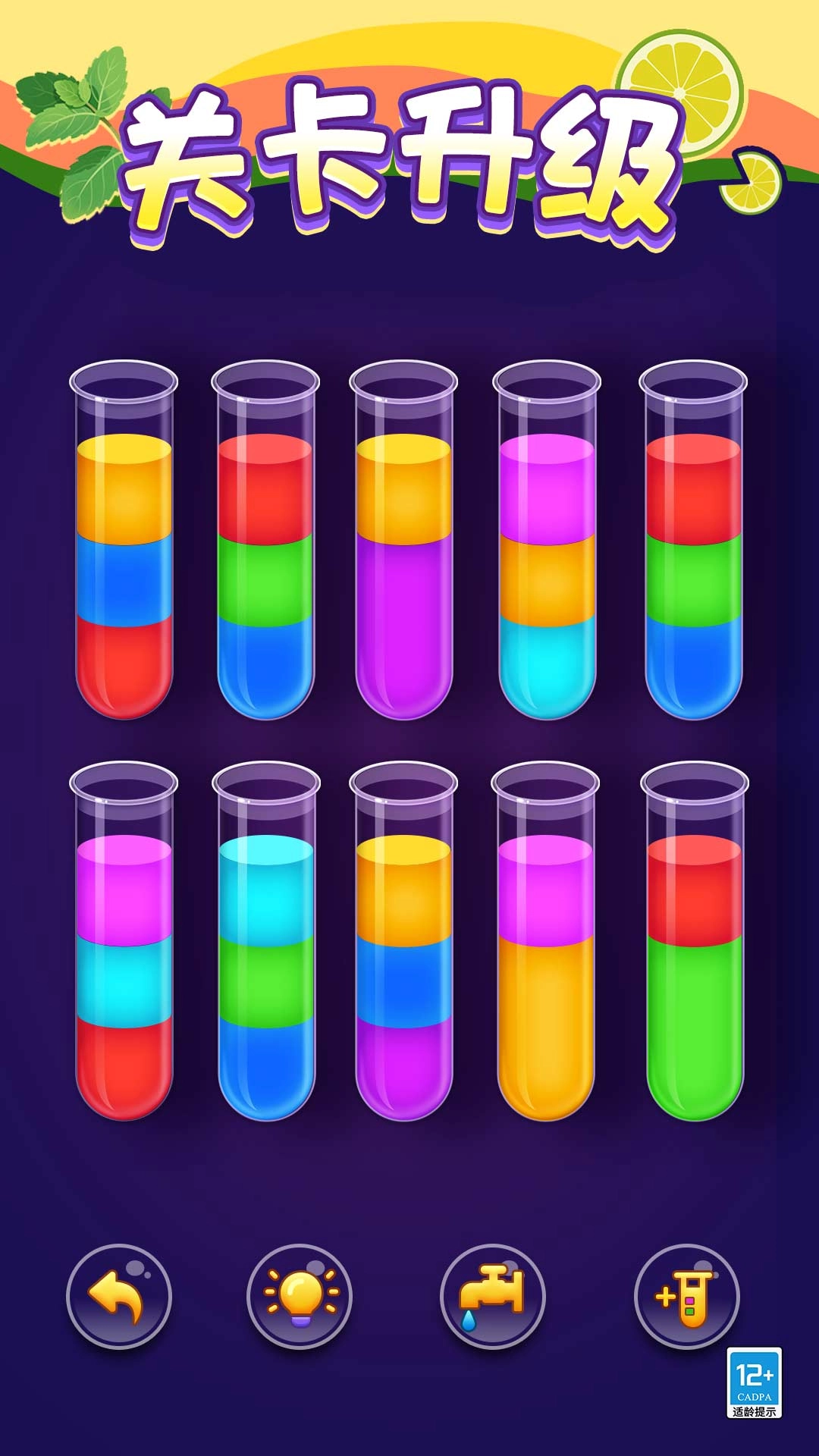 3、随着游戏推进,液体的种类会持续增加,玩家得通过一系列复杂操作才能完成分类,操作时务必保持谨慎。
