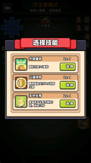 在防守启动前需挑选技能,各技能具备不同效果,玩家应熟练运用技能开展防守。