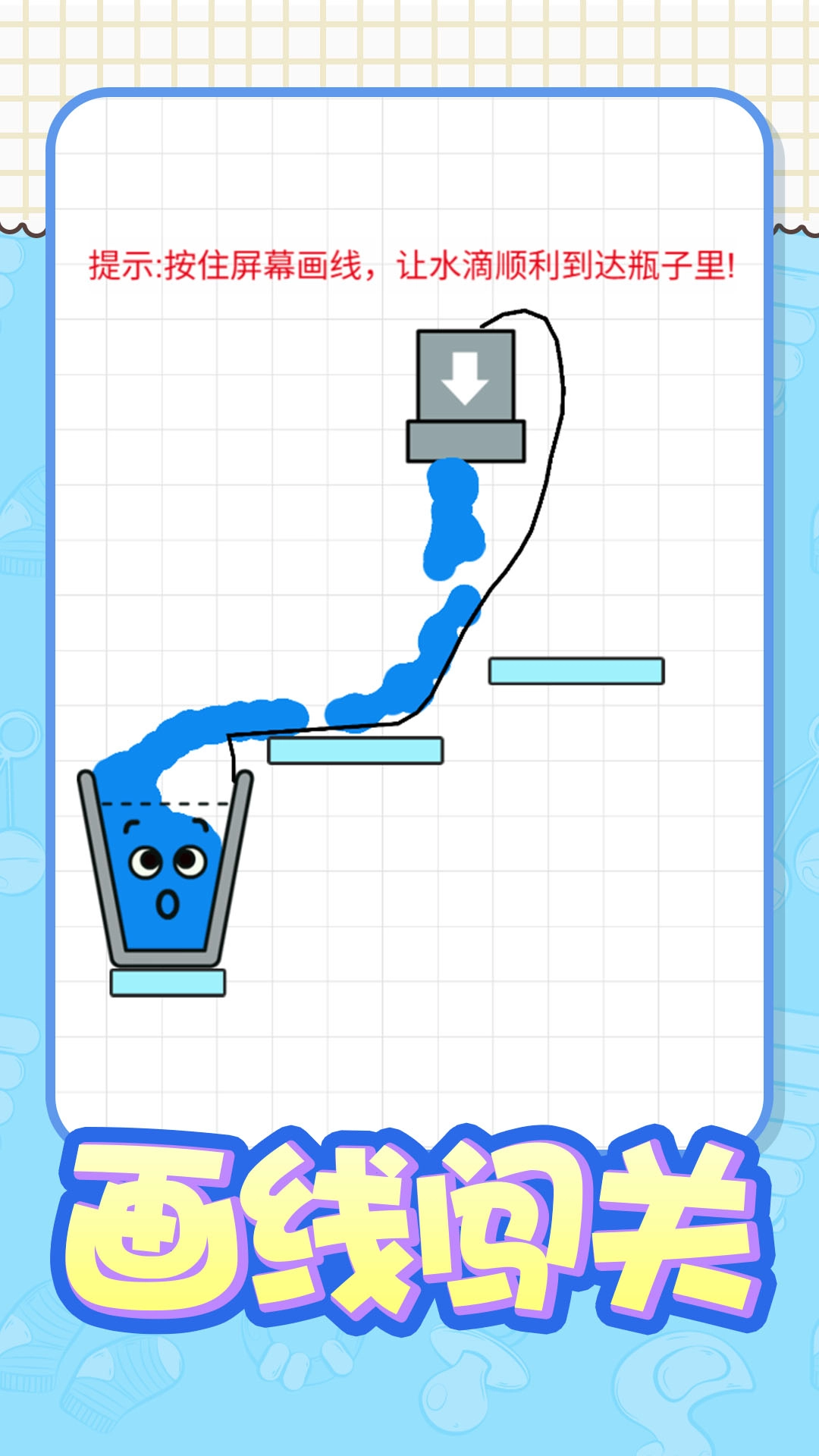 1、长按屏幕即可画出线条,这些线条会化作道路,引导所有水源顺着线路流入杯子。