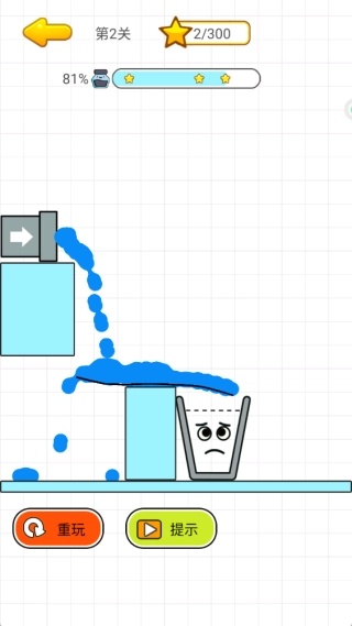 1、通过画线引导水流填满指定容器,借助逻辑思维规划水流的行进路线,突破关卡设定的限制达成任务目标,从而获得解开谜题后的成就感。