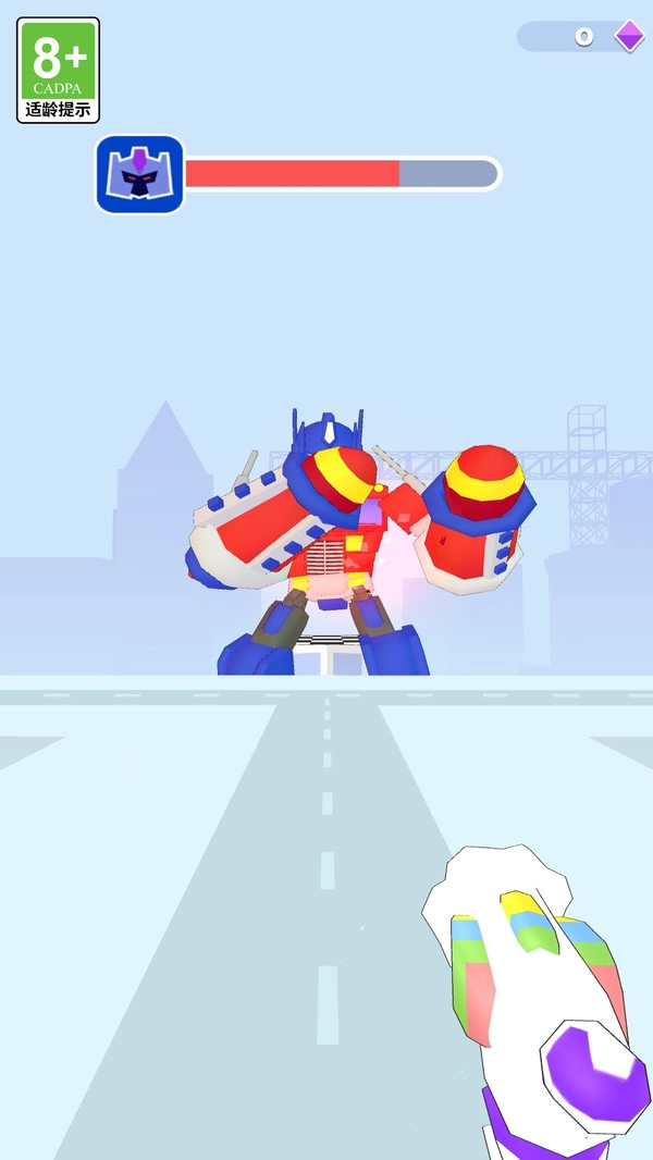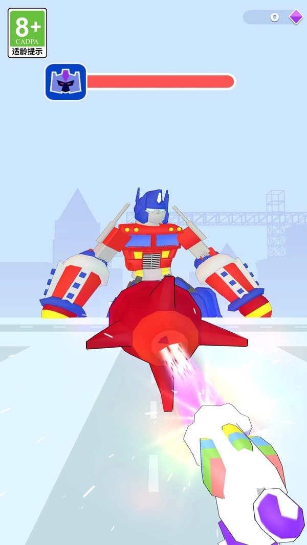 1、按照指引操控机甲战士移动,在未来战场上锁定邪恶机器人军团的敌人,完成战斗准备工作。