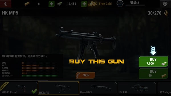 1、武器库里配备了各式各样的武器,玩家能够自主解锁心仪的武器,用以消灭僵尸。