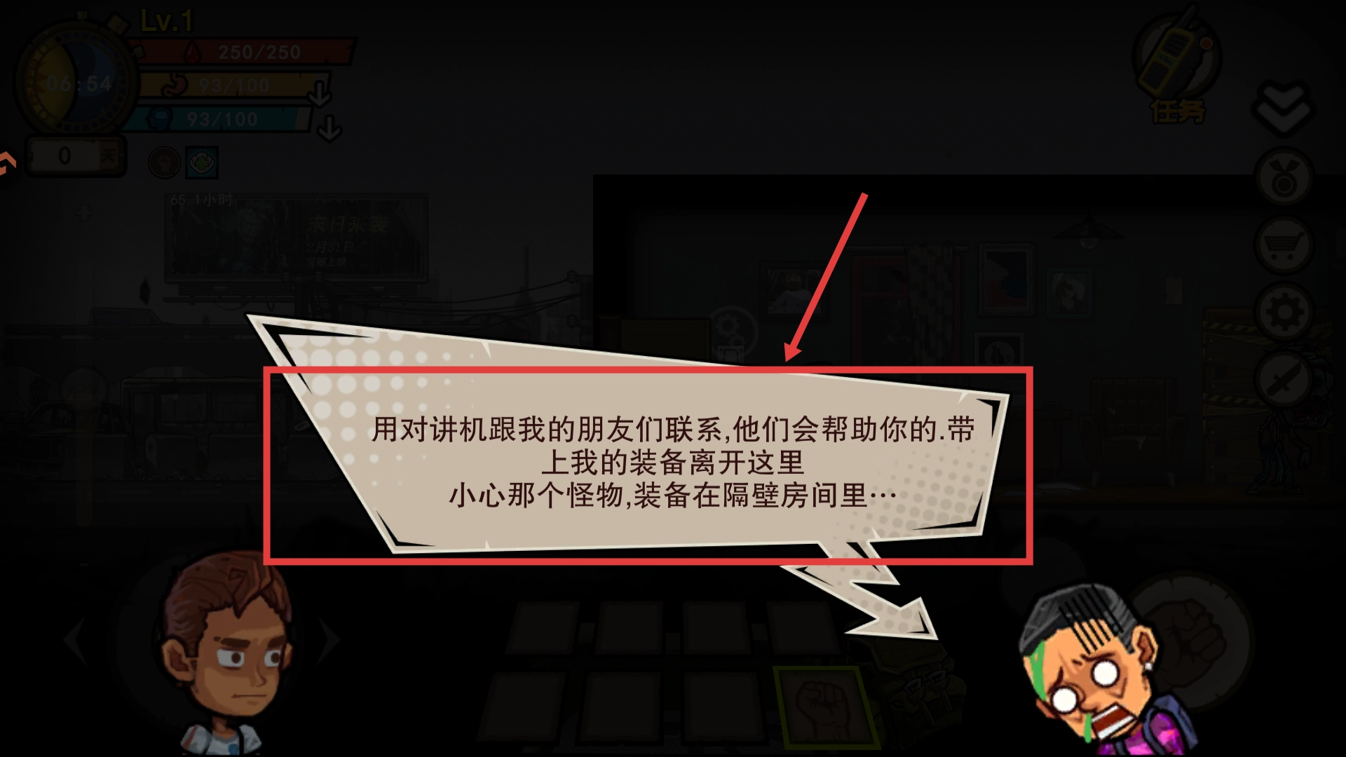 1、依据指令使用对讲机呼叫支援,前往隔壁房间取装备,出发前留意怪物动向,务必准备妥当后再采取行动。