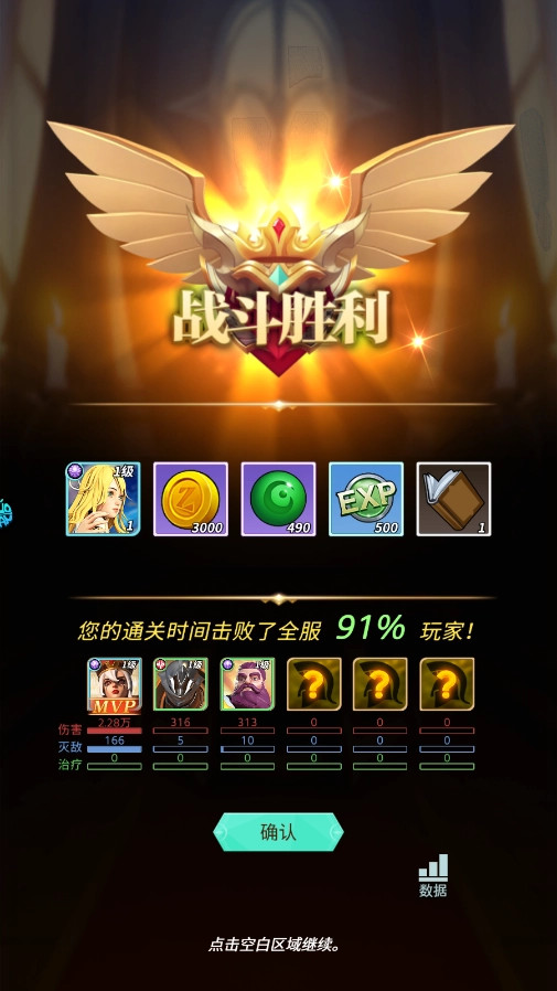 8、战斗获胜后能得到丰厚奖励,还有一定几率掉落角色。
