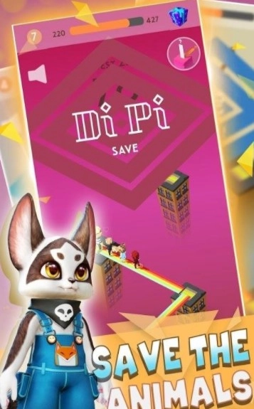 2、长按屏幕即可搭建彩虹桥,从而解救自己的小伙伴。