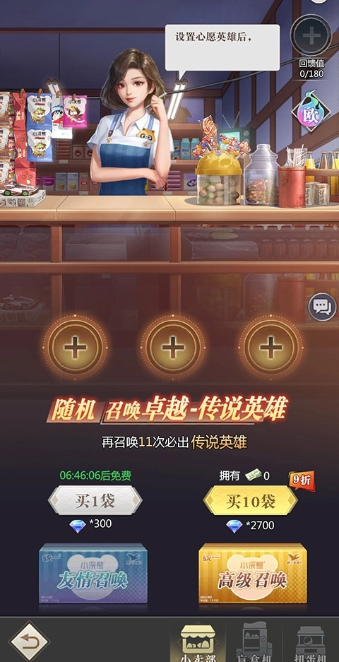 1. 小卖部里20抽必出传说英雄的机制调整为15抽必出,新版本抽卡的难度有所降低。