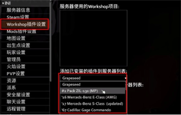 5、接下来我们需要点击插件设置,然后在已安装插件的服务器列表添加项中,选择第一个选项就可以了。