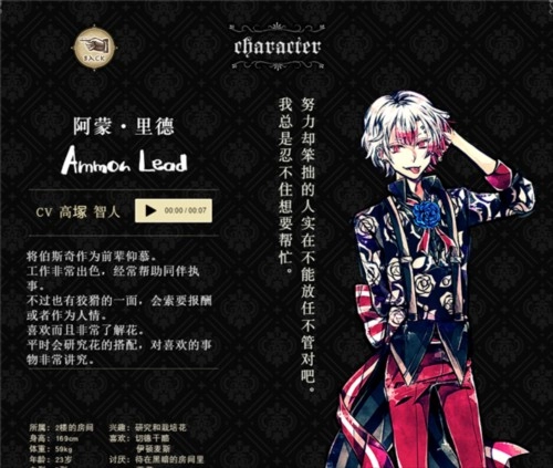 阿蒙对伯斯奇心怀崇敬,工作上表现优异,时常主动协助其他执事。尽管他有些狡黠,往往会以索要报酬作为提供帮助的条件,不过他也热衷于钻研花卉,在细节方面极为讲究。