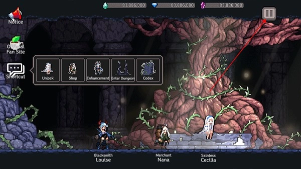 1、打开地牢杀手中文版,找到右上角的暂停图标并点击该按键。