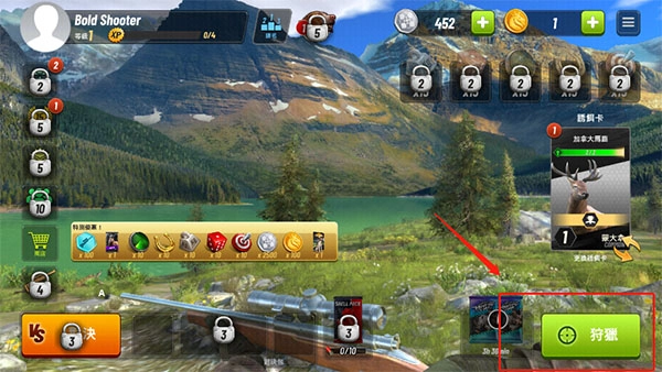 进入游戏后,点击界面上的“狩猎”按钮,就能启动当前的任务或比赛了。