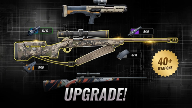 狙击枪、猎枪、弓箭等多种武器任你挑选,不同武器适用于不同目标,支持强化升级,提高命中率与伤害。