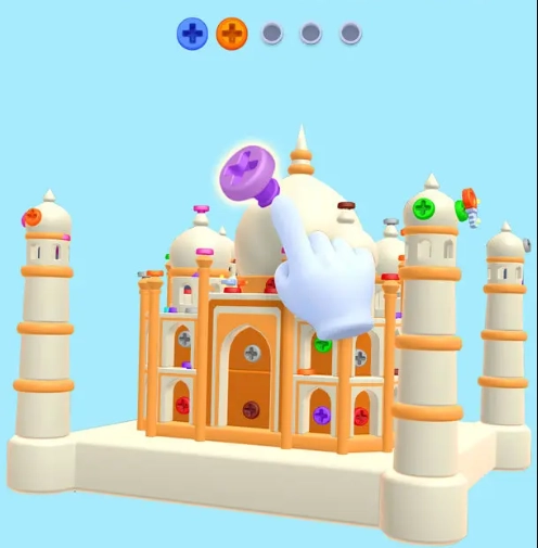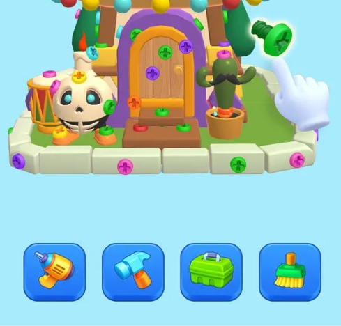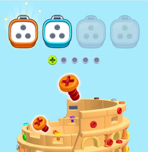 《疯狂拧螺丝》是一款卡通风格浓郁的休闲益智游戏,融合了拆除任务与策略消除玩法。在游戏中,玩家需拆卸建筑上的螺丝,让所有部件顺利脱落,以此完成各关卡的挑战。游戏的核心机制围绕不同颜色的螺丝展开——玩家需将它们分类放入对应收纳盒,当收集到三个同色螺丝时即可触发消除,进而获取过关奖励。每个关卡的目标都清晰明确,玩家能在开始前查看任务要求,提前规划好合适的操作方案。