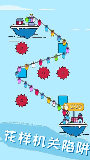 1.玩家需要帮助这些形态各异的呆萌企鹅,完成一连串的冒险挑战,最终抵达安全的冰块区域。