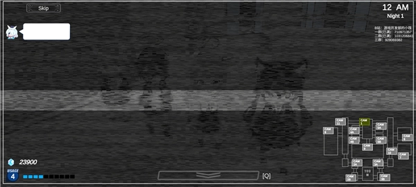 由B站up主“游戏开发部的小筏”制作的冒险生存游戏《沙勒的五夜后宫》,玩法灵感源自《玩具熊的午夜后宫1》——它把原作角色全部替换成了《蔚蓝档案》里的3DQ版美少女。在游戏中,玩家将化身老师,得想办法阻止学生的攻击:通过监控掌握每个同学的位置,及时关闭大门避免被抓到,全力撑到早上6点!这款游戏的玩法不算复杂,玩家会被限定在一个小房间里,无法随意出门走动,只要观察学生的动向、控制好大门的开关就可以了。喜欢这款游戏的小伙伴,欢迎前来本站体验!