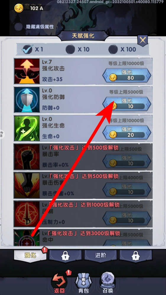 进入天赋强化界面后,可选择强化攻击、防御等天赋,消耗金币进行强化操作,精准提升对应的属性,能显著增强角色的战斗能力。