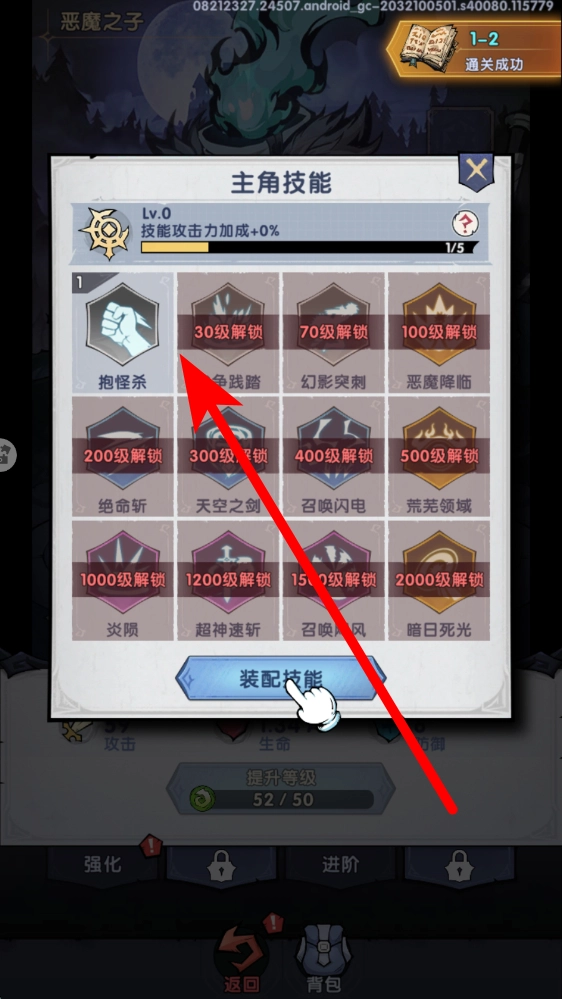 3、成功解锁新技能后,进入主角的技能界面,点击即可装配技能。通过科学合理地搭配技能,能够充分发挥各技能的效果,从而进一步提升战力。