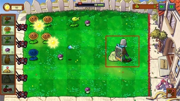 选好之后就可以开始放置植物了,这里建议多种些向日葵,不过在《植物大战僵尸:重生》里,一个阳光的数值是50!这也降低了游戏的难度!