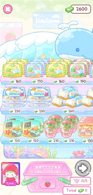 2、就能直接进入便利店,里面陈列着琳琅满目的商品,挑选好后就可以添加到购物车,总共需要选购五件商品。