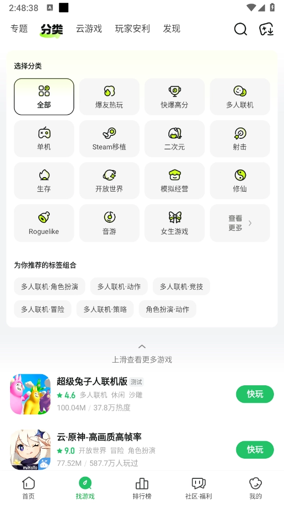 1、分类找游戏升级,便捷筛选直击兴趣。