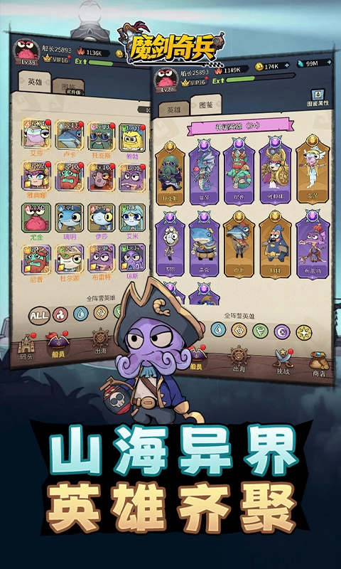 《魔剑奇兵》是一款航海冒险题材的游戏。在游戏中,你将化身为一名船长,在遍布废墟的海域里搜寻值得信赖的伙伴,同时收集维持生存的必备物资。你需要与那些发生变异的海怪进行紧张刺激的战斗,而真正最大的威胁,并非来自这些海洋生物,而是那些别有用心的人类敌人。你可以通过开启海域中散落的宝箱,获取更多的资源,用来培养和壮大自己的船队。然后参与策略性的回合制海战,一步步征服这片广袤无垠的海域。
