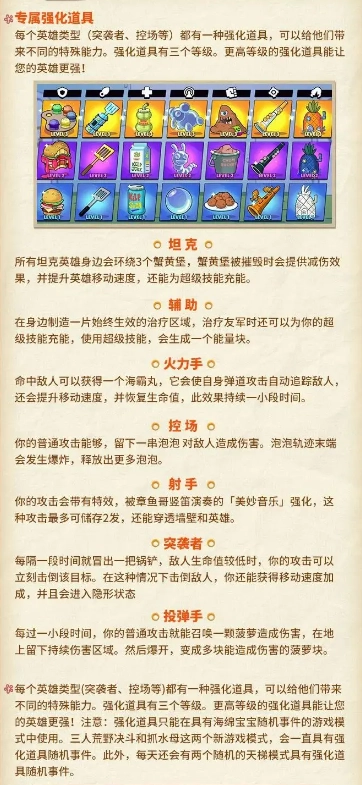 所有强化道具都需在海绵宝宝活动对应的游戏模式里才能发挥作用,下面为大家说明这些道具的具体功能。