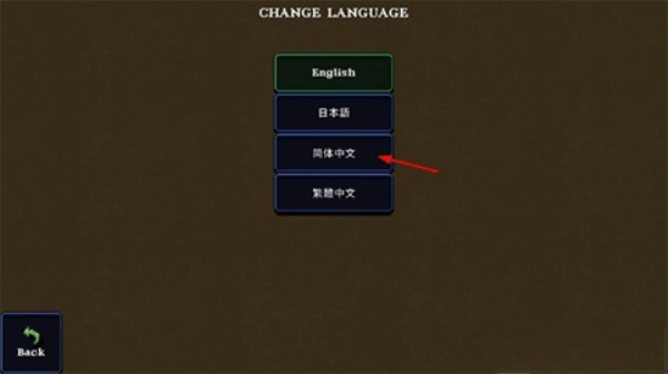 2. 点击后选择简体中文就可以将游戏设置成中文了。