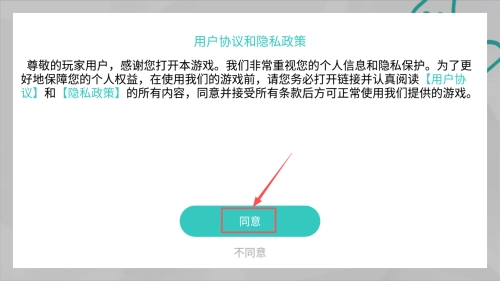 1、同意协议:在游戏启动页面,仔细阅读并认可用户协议与隐私政策后,点击“同意”按钮以继续操作。