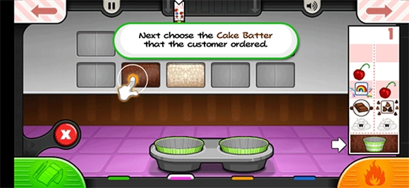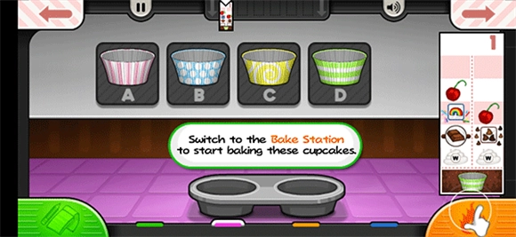 进入游戏后,第一步是接收客户的蛋糕订单,接着切换至面糊站,着手制作纸杯蛋糕。