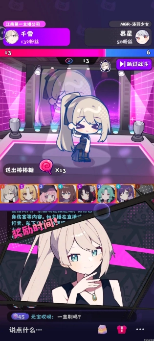 2、你要助力这些美少女主播在一场场PK中胜出,借助PK吸引更多粉丝,提升她们的人气!