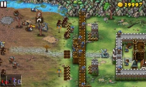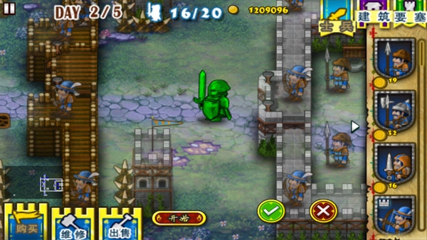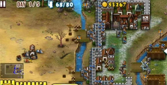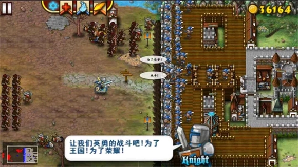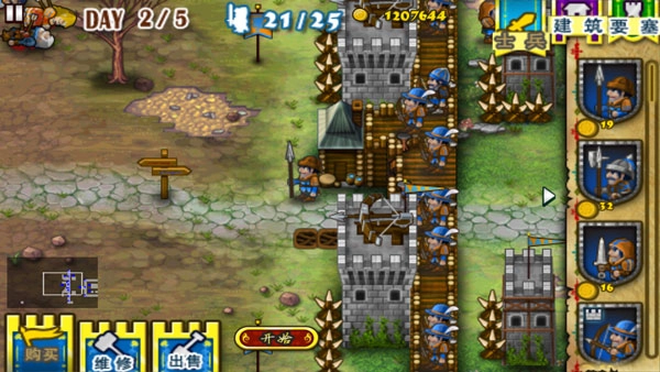 2、城墙海流:从名字就能看出来,就是布置大量城墙,再搭配众多弓箭手、铁锤兵,以及一座教堂、弓箭作坊和盾牌作坊。这个玩法适用于所有关卡,只要资源充足,把城墙和各类兵种都布置满就可以了。