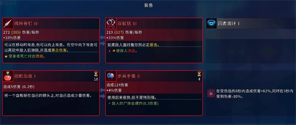 3、玩家初始拥有5个装备携带槽位,可用于配备各类设备。其中2个槽位固定用于携带武器,2个用于装备技能,剩余1个槽位则专门放置护身符。部分武器属于“双手武器”,这类武器会占用玩家的2个武器槽位,因此无法与常规武器同时使用。若尝试将双手武器所在的槽位替换为单手武器,会导致整个双手武器掉落。